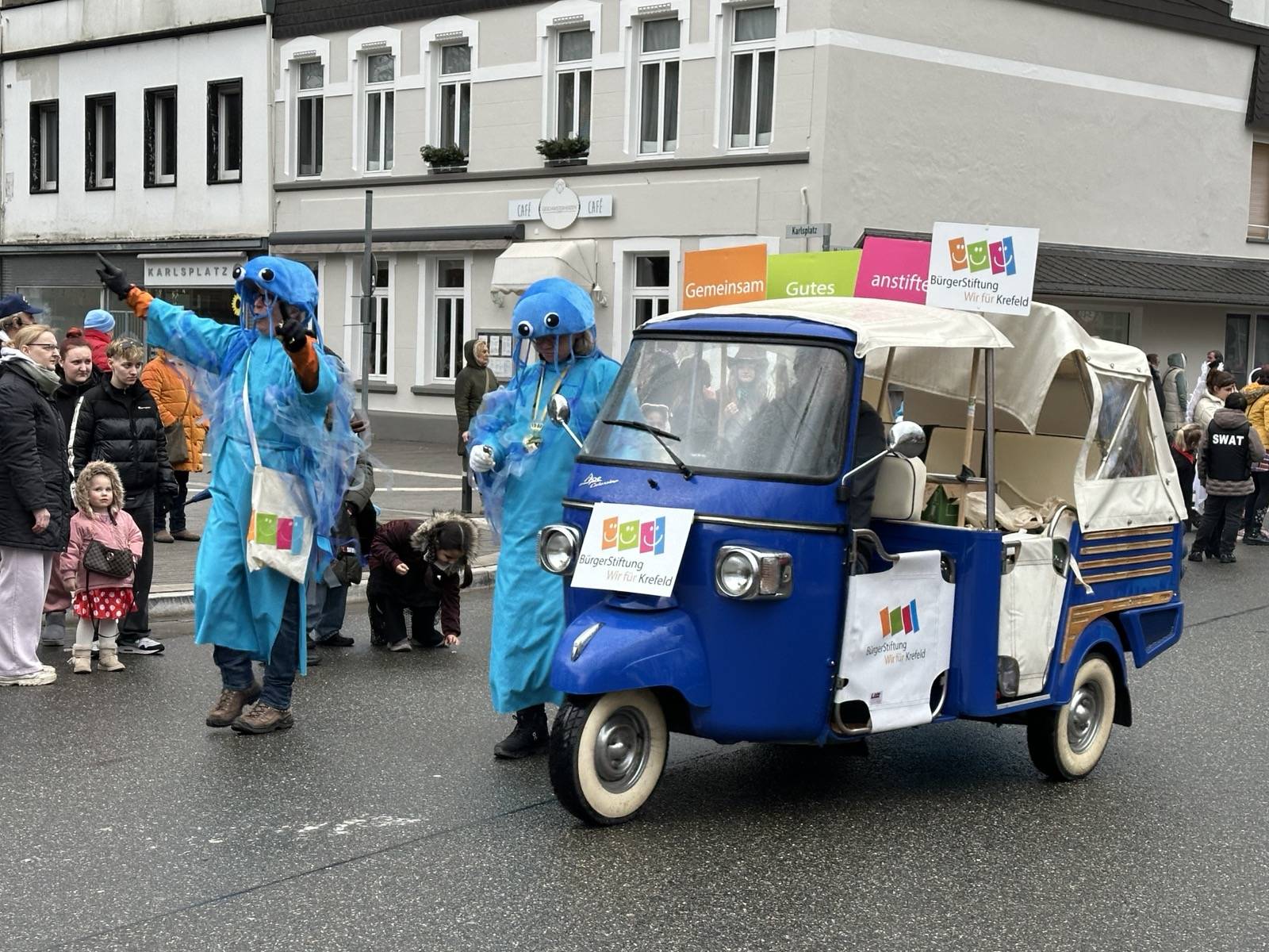 Ein weiteres Highlight war unsere Teilnahme am großen Rosenmontagsumzug in Krefeld. Unter dem Motto „Gemeinsam sind wir stark“ zogen wir am Rosenmontag mit zahlreichen Kindern und engagierten Helferinnen und Helfern durch die Straßen. Mit viel Freude, Musik und guter Laune setzten wir ein buntes Zeichen für Zusammenhalt, Vielfalt und Gemeinschaft. Es war beeindruckend zu sehen, mit wie viel Begeisterung alle dabei waren!